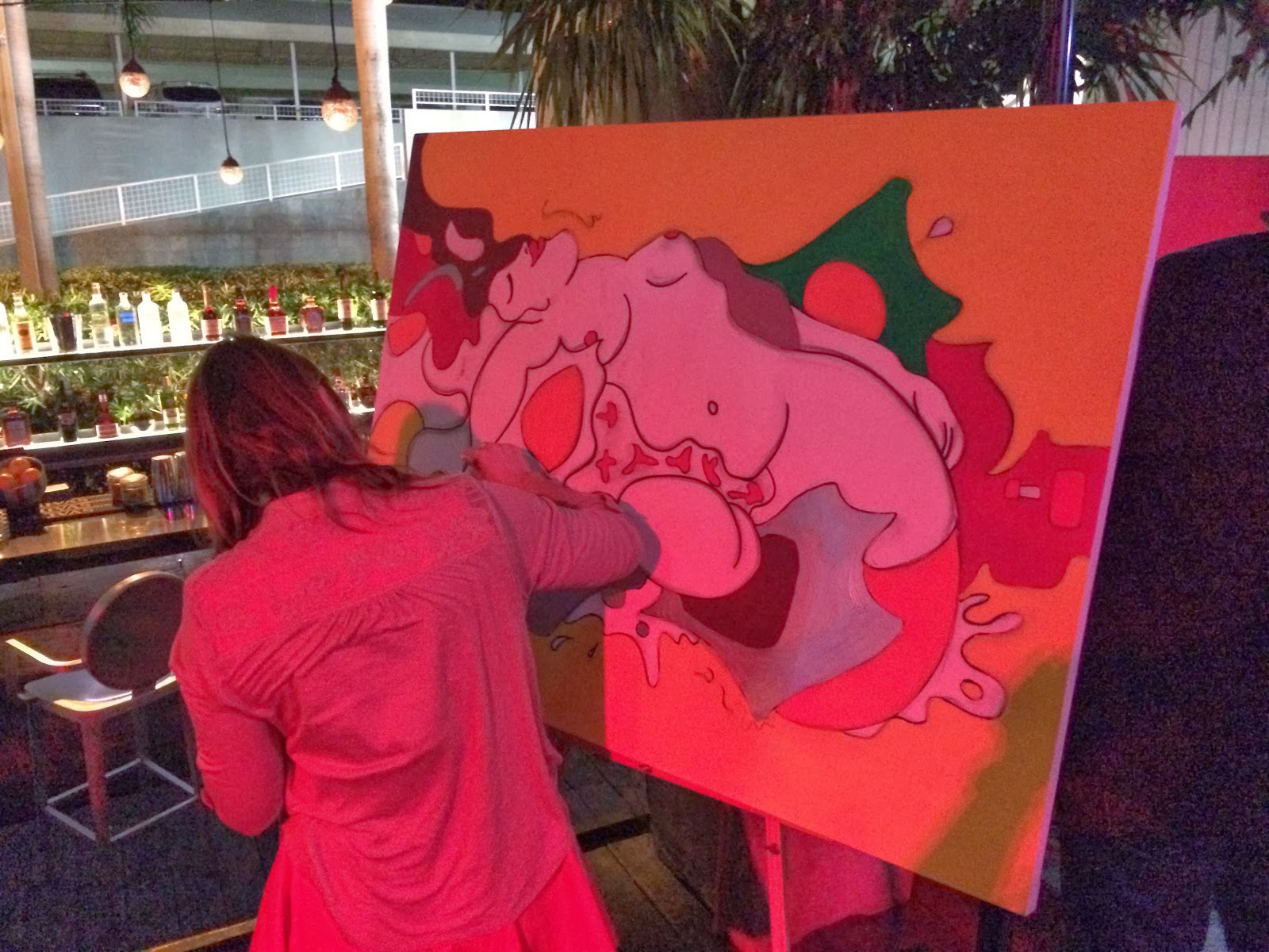 One of my favorite parts of the night was having an artist actually creating art <3. Anouck Jourdaa is a French artist living in South Beach and creating art that depicts the “joy of being a woman.” I love the bright colors and the curves that Anouck uses in her paintings. Her art looks & feels sensual and fun all at the same time.