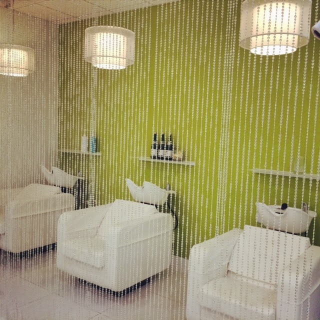 All the way in the back of the space are the hair washing stations. The space is actually divided by a curtain of lovely, opalescent beads to really turn a regular hair washing into more like a magical experience.