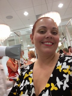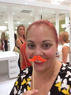 That’s me with the orange stache! Unfortunately there were no blow outs going on that evening so my hair was pulled back in a bun…LOL!