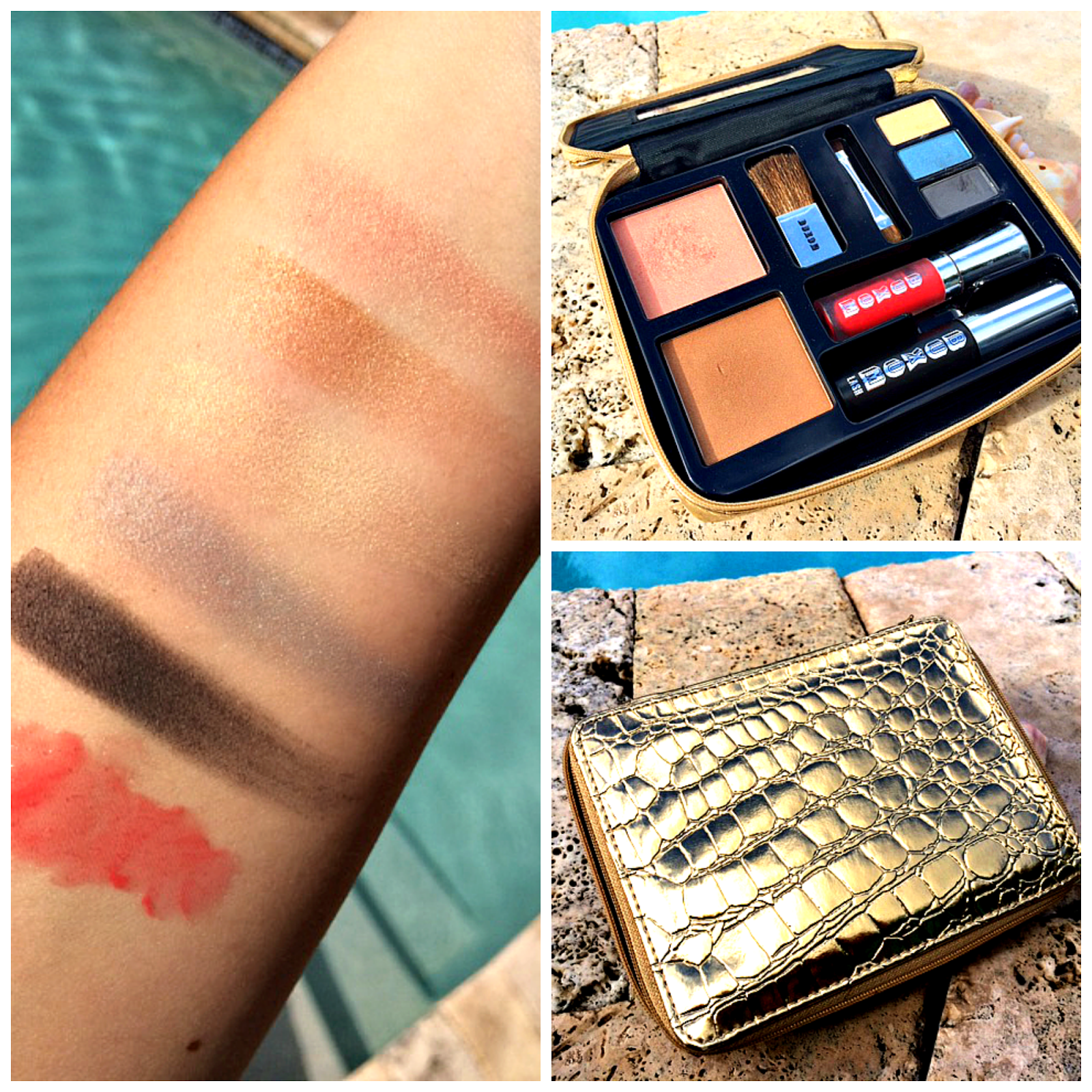 After seeing this item on the Sephora website several times (and questioning whether I should buy it or not) I finally bit the bullet. I am SOOO glad I did! First of all, the palette smells delicious…I am not sure if it was done on purpose to simulate a beachy vacation but that is exactly what it reminds me of. I put this palette to the test by making it the ONLY makeup I took with me on a family trip to St. Augustine. I was able to create different day looks and go easily from day to night by layering the colors and increasing the intensity. This palette includes seven different makeup items (swatched from top to bottom):