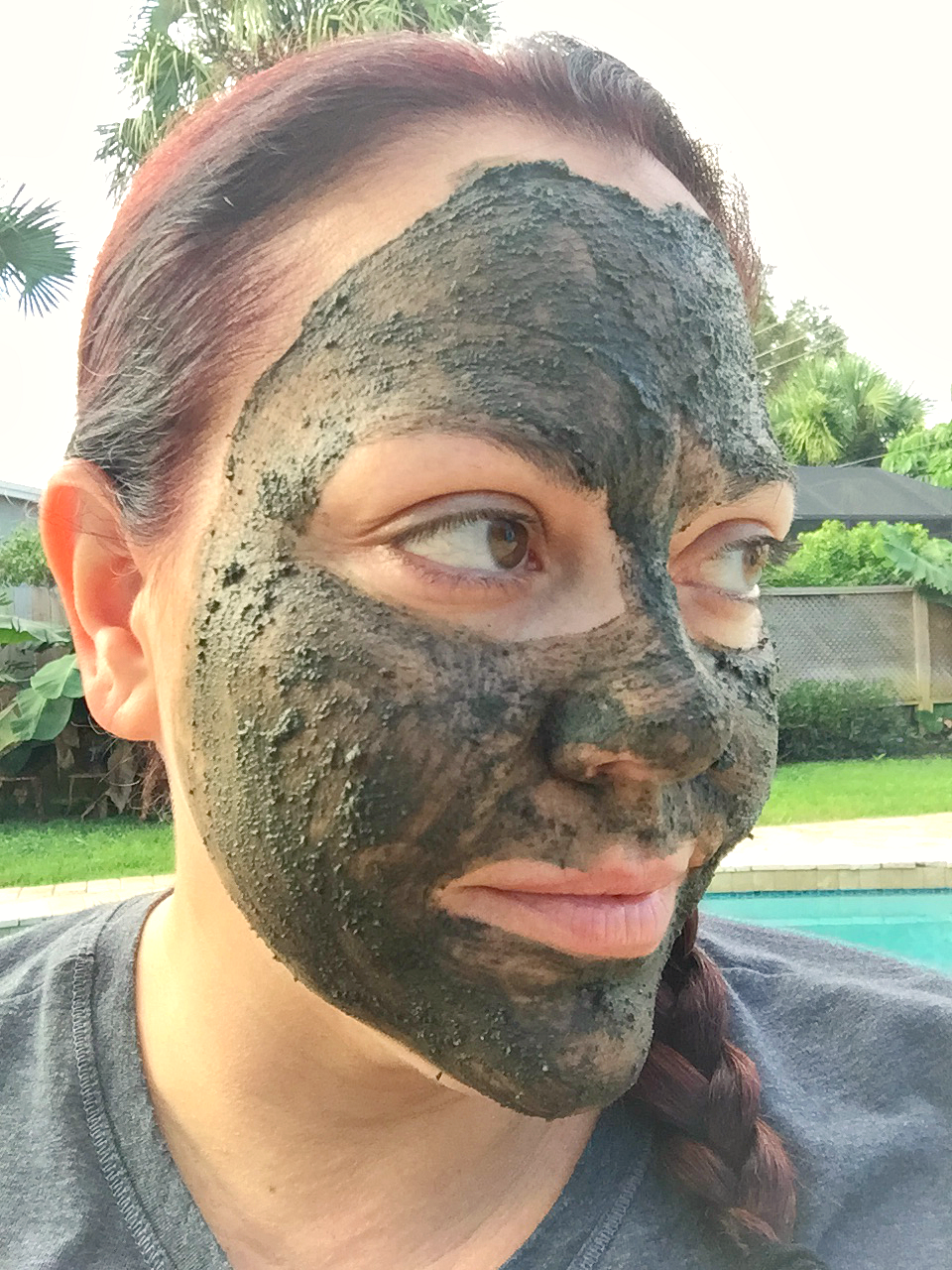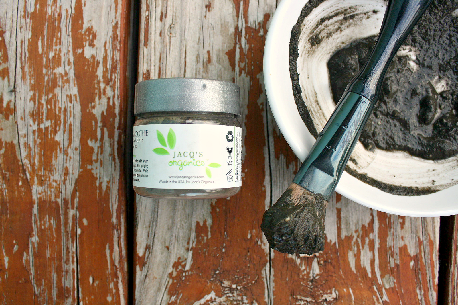 The Jacq’s Organics Green Smoothie Face Masque & Scrub comes in powder form that is combined with water to produce a dark green paste. I used a brush for application and that made it very easy to get it on evenly. Directions state to leave it on for 10-15 minutes and as the masque dries it goes from a very dark green to an almost dark moss color.