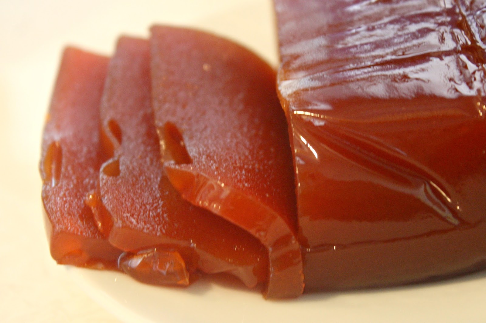 3. On a separate plate, take the bar of guava paste and slice into eight, 1/4 in thick slices. Again, this is just an estimate, I just sliced enough to have a pretty even guava to cream cheese ratio.